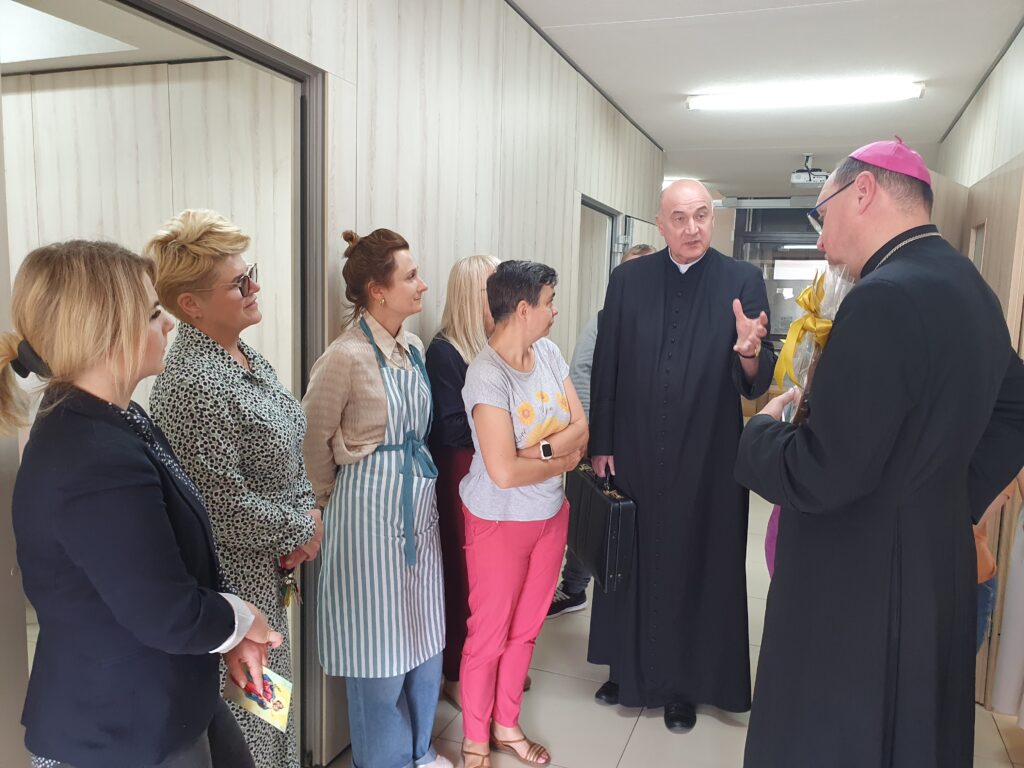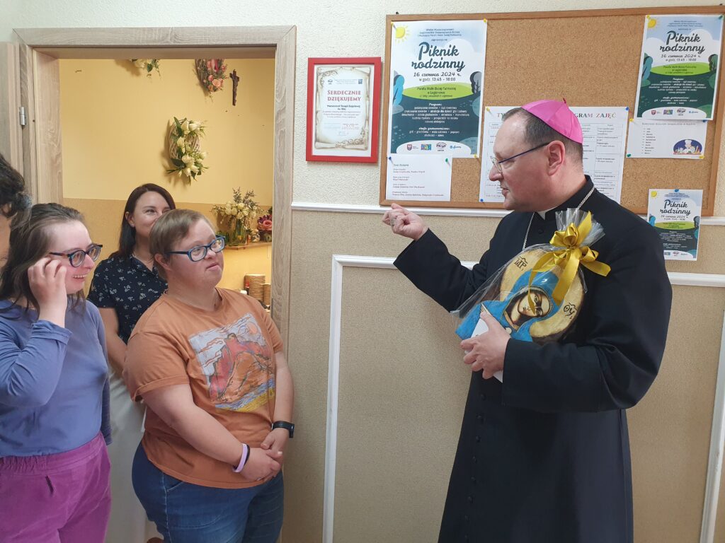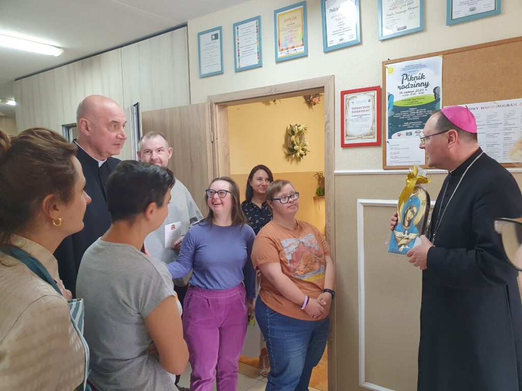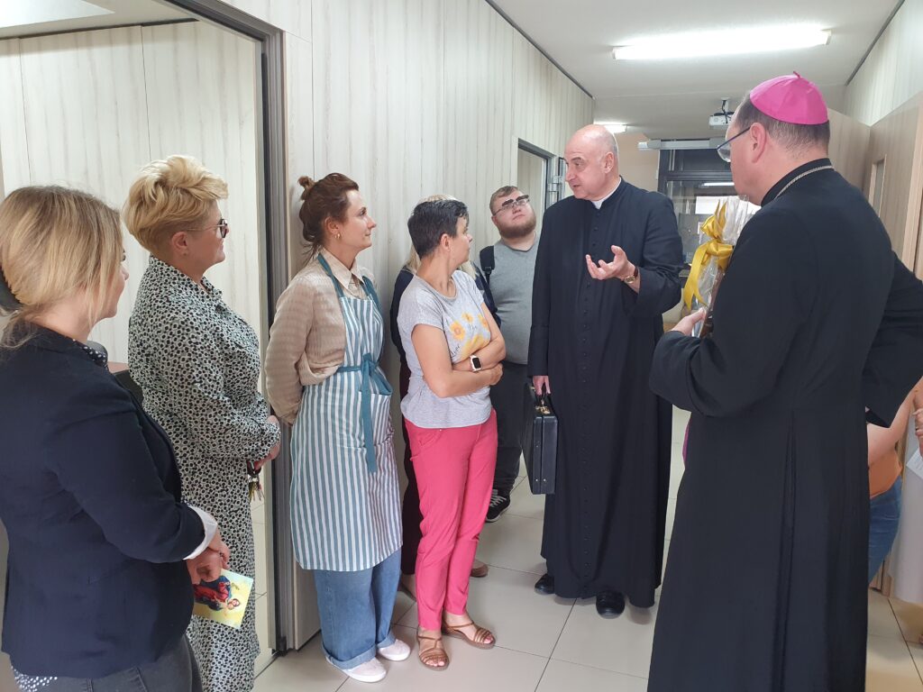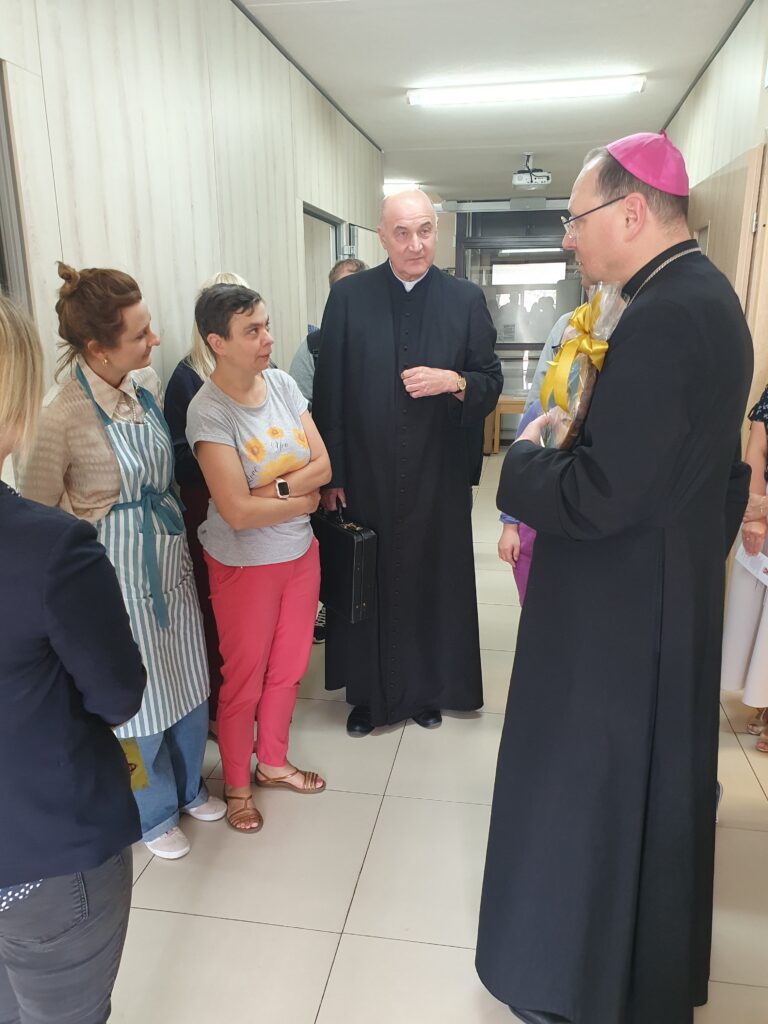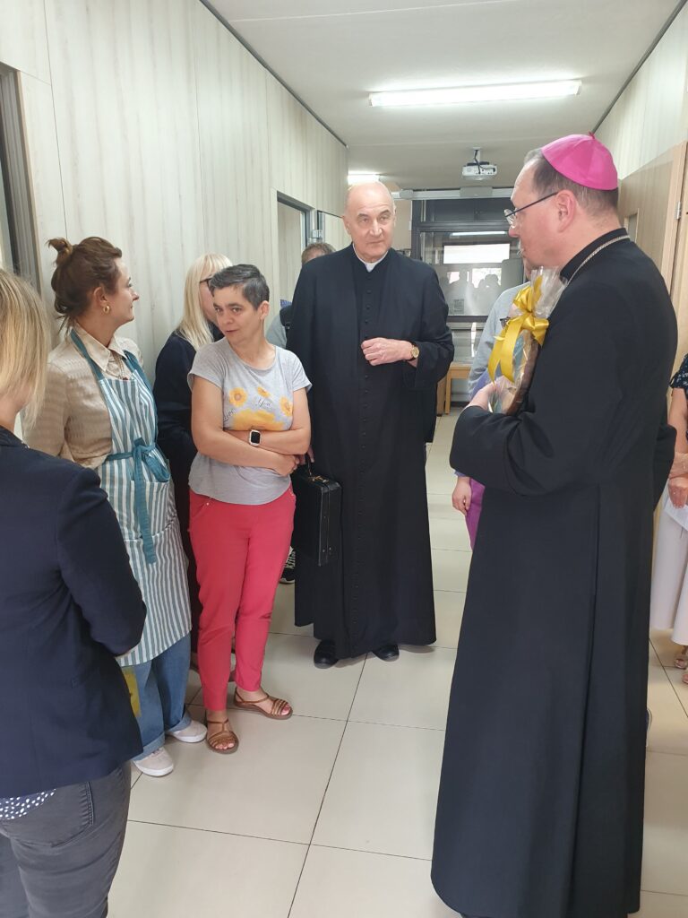 Ksiądz Biskup rozpoczął swoją wizytę od Warsztatu św. Rity, gdzie z ogromnym zainteresowaniem zwiedzał wszystkie pracownie i słuchał informacji o naszych działaniach i projektach. Następnie odwiedził Klub Seniora AMICUS oraz Centrum Rehabilitacji, zapoznając się z naszymi celami i działaniami.